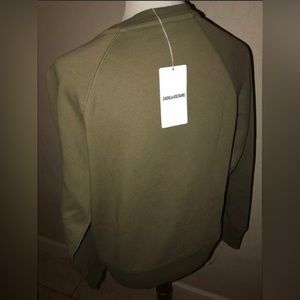 New! Zadig & Voltaire Upper Skull Gold/Khaki 100% Cotton Sweatshirt Green XS✨