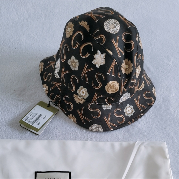 A new monogram emerged from the Ken Scott and Gucci collection displayed on this vegan canvas bucket hat. Ken Scott was an American designer who lived in Milan in the '60s and '70s and whose colorful floral drawings were reflective of his eclectic personality.