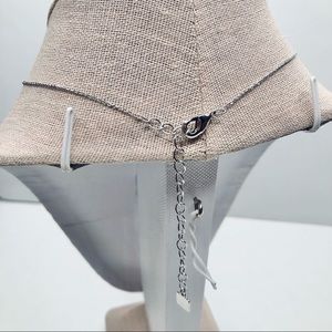 a solitaire glass pearl is suspended from a dainty silver finish chain. 15+3”