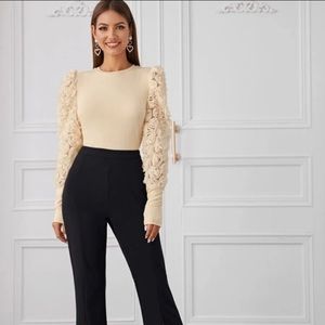 NEW INVENTORY 🔥3D Flower Appliqué Lantern Sleeve Form Fitted Bodysuit🔥