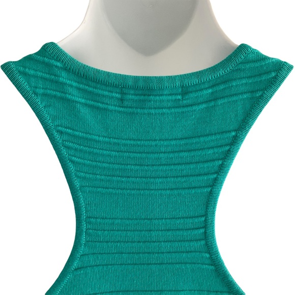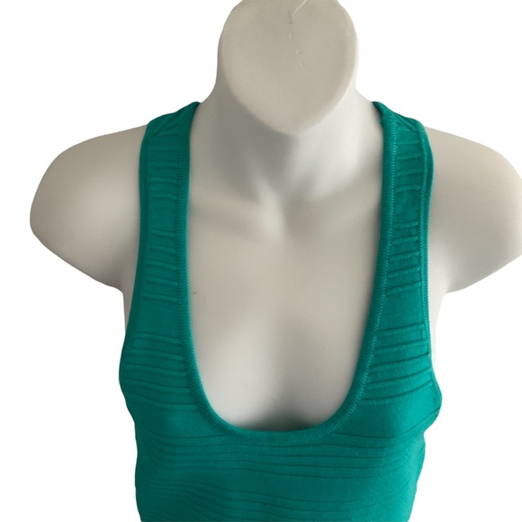 Size Small. Form fitting. Scoop neck. Super stretchy. Green with just a hint of blue undertones. Worn only a couple of times. Great shape. Decorative horizontal ribbing. Racerback. Approx 33โ length.