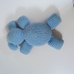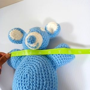 •Handmade Crocheted stuffed Bear sky blue and white 🐻 10in