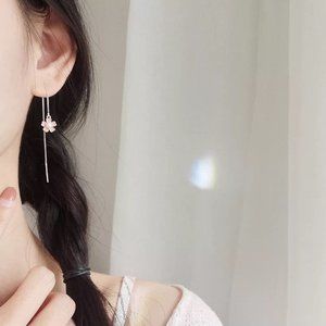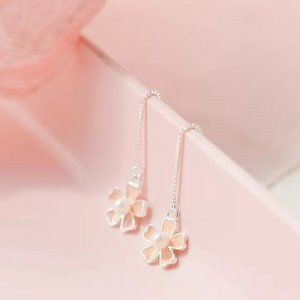 14k Gold Flower Long Chain Threader Earrings Sterling Silver