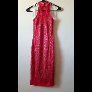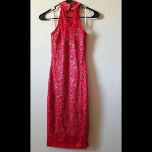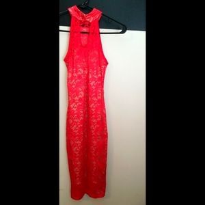 Whoever didn't appreciate this...Guess what? Their loss is your gain! 🤷🏾♀️ GORGEOUS...GORGEOUS...GORGEOUS!! There are no other words to describe this beauty! I'm so sad to let this go but I cant fit it anymore 😭. Gorgeous stunning mock neck dress adorned in red lace all over with a nude satin lining underneath. This dress is very form-fitting so beware. Size Small but to me it fits more like an XS. It's really tight so I wouldn't recommend any more than an XS-S to purchase. Excellent condition. PRICE FIRM. Happy shopping!!