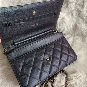 SOLD Chanel wallet on chain in iridescent caviar