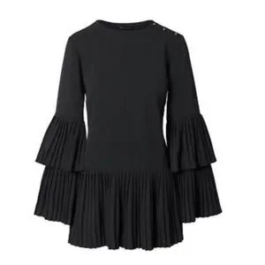 Limited edition swing top with tiered accordion pleats, and flared sleeves and hem. Button closure at shoulder. 100% Polyester. Measurements upon request.