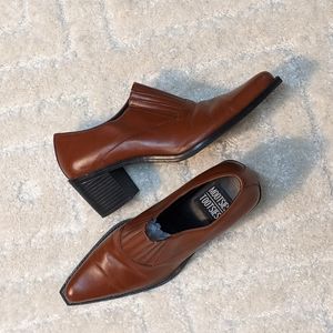 Mootsie a Tootsies Ridge Brown Leather Block Heel Loafer Shoes, 7.5