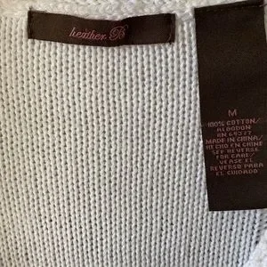 Collared, jacket-like, cotton sweater with 3/4 sleeves. Mixed weaves. Neck to hem 22”.