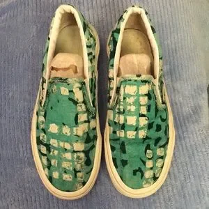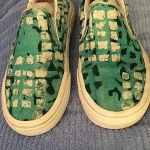 Vans Della Green size 7.5 woman/ 6 man. You will need a foot liner/ Dr. Schoales