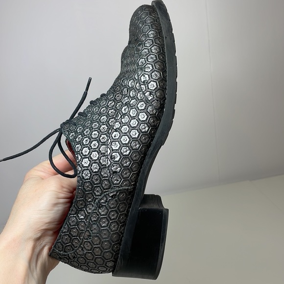 LEATHER LACE SHOE ON LOW BLOCK HEEL.