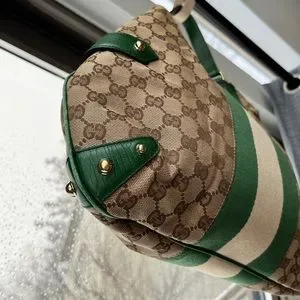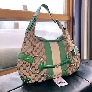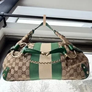 ๐ Gucci: Horsebit Chain Studded Web Monogram Hobo Shoulder Bag