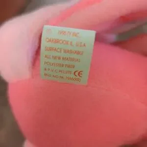 PVC Pellet listed on tag. Has tag errors. This is supposed to be rare, missing commas, missing periods, has KR... Pinky Beanie Baby 4072. Tags attached. The heart shape tag part of the TY is peeled off where store sticker was removed. Crease on cardboard tag. See pictures for details. Smoke free and pet free home. No stains or rips.