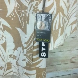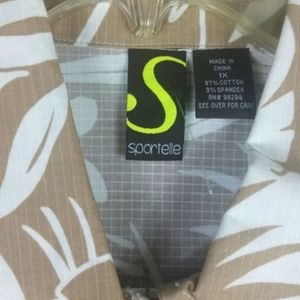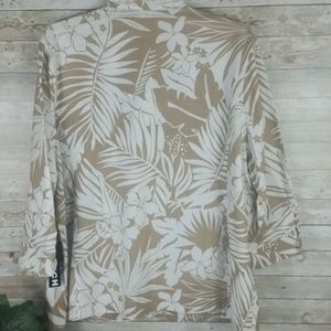 NWT, Sportelle, 0190, Taupe and White palm leaf Jacket, light weight, 3/4 sleeves, front flap pockets, button down, v neck, will wear well with creme shirt/slacks, Size 1X