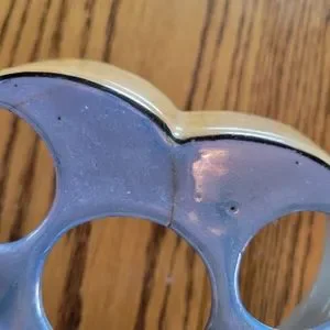 > Base has been glued at the front and there are a few manufacturing pin pricks on the top.