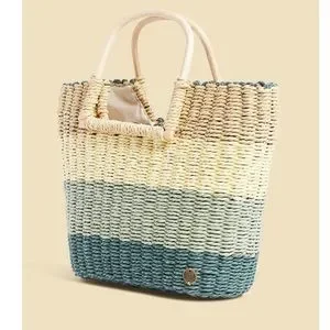 Made to roll with you, the Ride The Waves Straw Bag travels without leaving a footprint on the environment thanks to biodegradable paper straw construction. Part of the Billabong x Salty Blonde Collection, the striped straw tote is finished with wooden handles and a metal logo badge. Wooden square handles. Exterior Billabong logo badge. Interior wall zip pocket. Fully lined. Dimensions: 11" x 14" x 4". 100% paper.