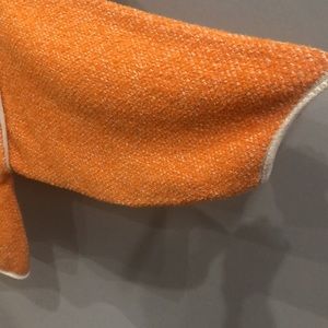 Free people new with tags pretty orange cream combo light weight sweater with cream piping wider sleeves shorter length would look great with white jeans