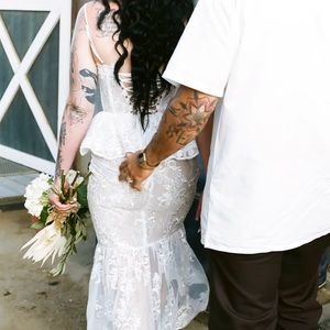 @abbywatzke I wore for one hour for photos . I had vchapman make me this dress last year as she no longer made them - she had enough fabric to recreate design so I jumped on the opportunity it is below the knees and has a flow bottom