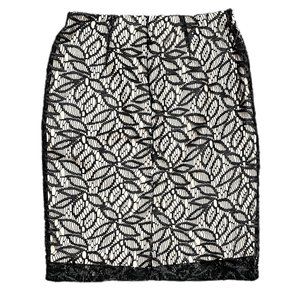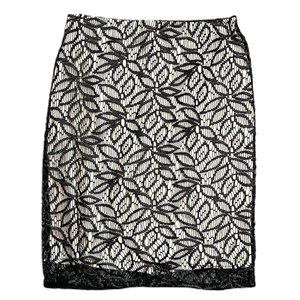 Ann Taylor Beige And Black Floral Lace Pencil Skirt