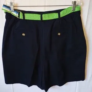 NWT Karen Scott Sport Chino Golf Tennis Shorts Women's 14 Navy Blue Flat Front. Very cute green polkadot belt.