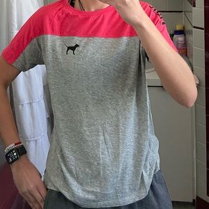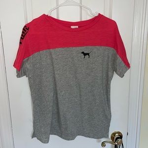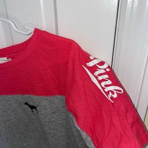 - Had “PINK” written in cursive on both shoulders (one side in white, other side in black)