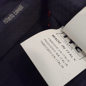 Roberto Cavalli men's 34" waist textured pants 2008 collection model RL1107. Pants are Italian size 50, 97% cotton, 3% elastane. 34" waist, 34" inseam, 9.5" rise. Zipper and clasp closure with interior button closure. These pants are in perfect condition, no wear or fading. Front and back pockets lay flat...no stretching. Zipper has snake on front and Roberto Cavalli signature on the back. Pants are a heavy weight cotton with geometric pattern. Dry clean only. Please see pictures for additional measurements and details of these amazing pants.