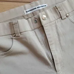 Camel color men's pants size 30. Raymond Dragon is a New York boutique retailer This is a slim form fitting pant with a softer material 5 belt loops 2 pockets in front. 2 in back. snap closure approximate measurements are length 38" inseam 29" waist 30" hips 34" new without tags.