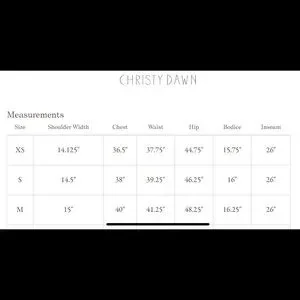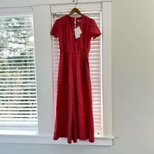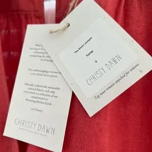 An amazing jumpsuit. Roomy, colorful, and comfy! Sustainably made in LA…Christy Dawn does it again! “The Dawn Jumper” in Turnip. Drawstring tie at the waist and adorable detailing. This is a size small. Size chart from the current Dawn Jumper on Christy Dawn’s website is shown in photos.
