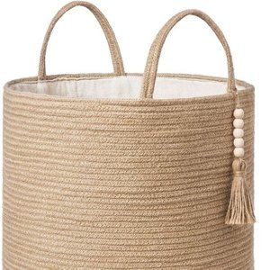 Urban Outfitters Decorative Wooden Bead Natural Rope Woven Storage Basket