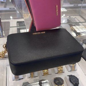 Michael Kors Jet Set Item Large East West Zip Crossbody Leather Black
