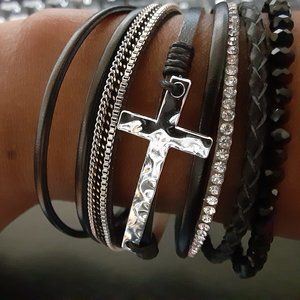 ✨SALE✨ Beautiful black magnetic charm buckle bracelet (Cross-Rhinestone-Beads).