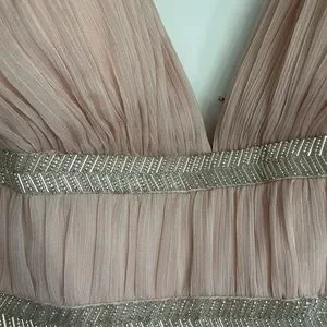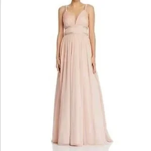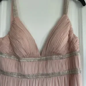 NWOT. Never worn. Aidan Mattox pale pink chiffon with beaded detail size 8. Couple alterations in busy but can be released. Original $330