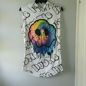 Men's Hustle Gang Sleeveless Trippy Tie-Dye Smiley Face T-Shirt