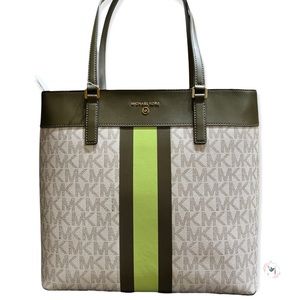 NWOT Michael Kors Center Stripe Morgan Large Tote Olive Multi