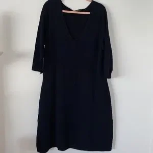 black dress from lane bryant that contours your body with its stitching đ 3/4 sleeves and about knee length.