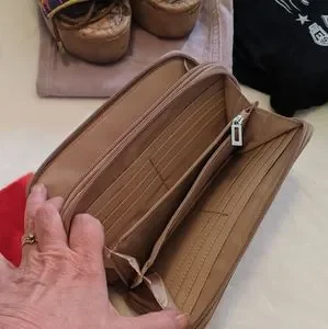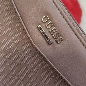 Logo Embossed Pattern Wallet by Guess. Faux-Leather. Silver Color Logo Detailing & Hardware. Inner Compartment Slots. DBL Zipper Closure. Hard to Find Vintage-- Light Blush Pink Color.
