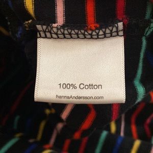 Hannah Andersson Girl’s Dress. Black with multicolor/rainbow stripes. Fitted at the top, tiered bottom. Sleeves. Size 100 (equivalent to a size 4). (MH22EA)