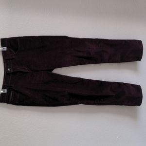 These soft and velvety pants are a mid rise skinny jeans style cut and oh, so chic! Waist measures 16.5" across laid flat and measured across. Rise is approximately 10", inseam is approximately 29.5". Ankles measure 7.5" across laid flat and measured side to side at the hem. The perfect amount of stretch for fit and comfort. Beautiful burgundy red wine color!