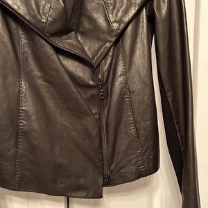 Vince Black Lambskin Leather Jacket Moto Zipped Mixed Media