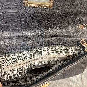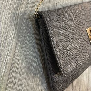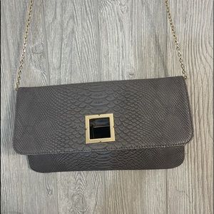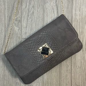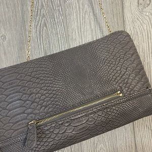 Urban Expressions Grey & Gold Crossbody Purse Clutch with Chain Faux Alligator