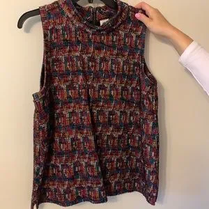 Excellent condition; never worn; multi colored heavy sleeveless top with zipper back