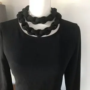 SOLD black crepe dress ornate collar by Diane Von Furstenburg sz XS 2