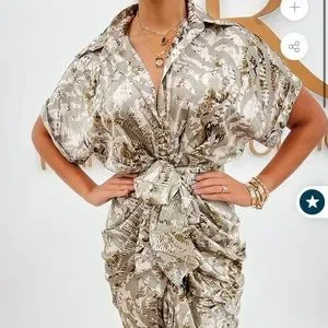 Prinzzesa Boutique Mable Snake Olive green dress with tie front. Size Small