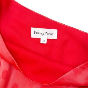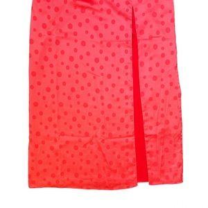 Coral maxi dress by Privacy Please from Revolve. One shoulder with tie strap. Satin fabric with polka dot jacquard print. Front slit. Side zip. Excellent condition!