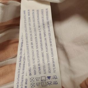 Fun Blush&White Statement Ankle Pants, front and rear pockets and elastic comfort waist. No flaws and can be worn any season. These are so fun. Waist flat unstretches is 13", 11" rise and inseam is 26". Cuff at ankle and these are a well made thicker pant.