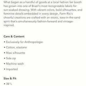Highly rated and sold out at Anthropologie; Farm Rio maxi skirt. Super cool retro look to fabric; front slit, hidden side zipper; side seam pockets. Sizes XS and XL but runs on smaller side. NWT, smoke free home. Stunning, statement wardrobe piece!! Matching top in my closet.