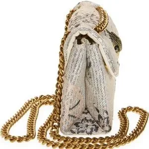 Shimmering sequins amp up the glam appeal of a scaled-down crossbody styled with a versatile pull-through chain strap and finished with a signature eagle head.