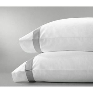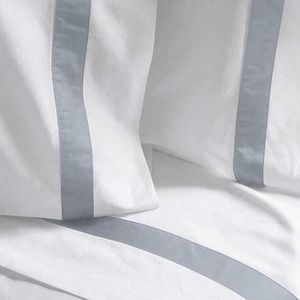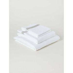 Boll & Branch Full Size Organic Cotton Sheet Set, White with Pewter Banding NEW