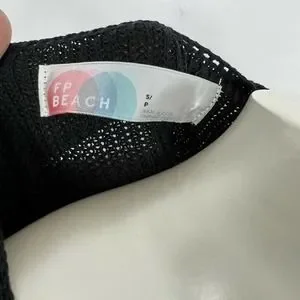 Free People Beach Long Duster Cardigan Women's Small Black Knit Open Front Boho.