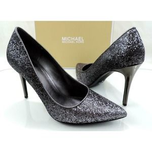 MICHAEL Michael Kors Claire Pump Heels Glitter Fabric Gunmetal Grey