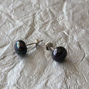 Black Freshwater Pearl Earrings-Stud earrings